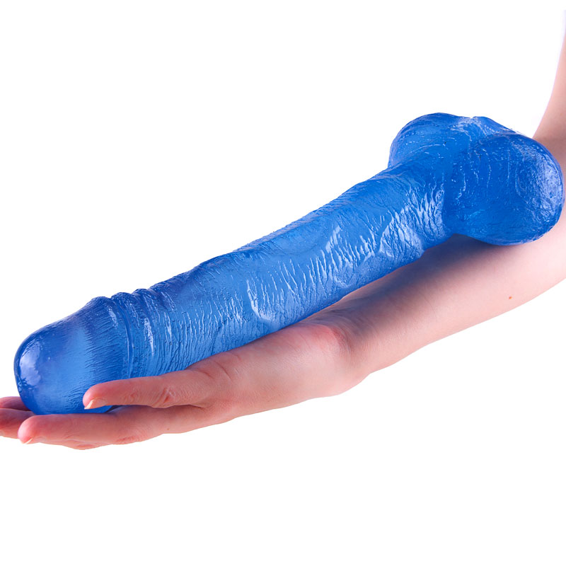 12 inches of blue jelly dong. Realistic look penis shaped dildo